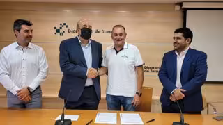 El presidente de la DPT, Manuel Rando, ha firmado el acuerdo con el presidente de este colectivo, Juan José Martín, con la presencia de Diego Piñeiro, diputado de Cultura y Turismo de la institución, y Valentín Calvo, directivo de la asociación turolense.