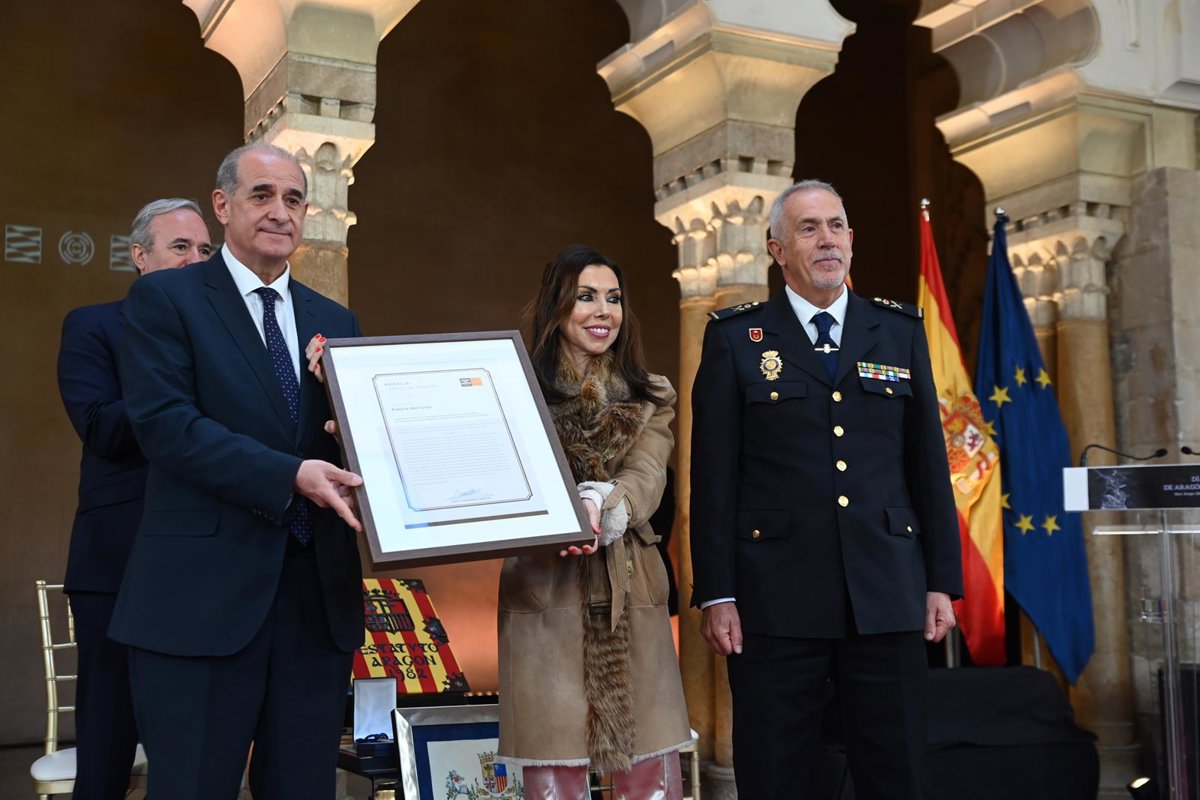 La presidenta del Parlamento autonómico, Marta Fernández, ha hecho entrega de la Medalla de las Cortes de Aragón, la máxima distinción de esta institución, a la Policía Nacional, como reconocimiento a su labor en sus 200 años de historia. Su director general, Francisco Pardo, ha dicho que "sigue habiendo pavorosos dragones, en términos de retos, a los que tenemos que dar batalla"