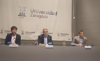 Mayoral ha comparecido en rueda de prensa en el Edificio Paraninfo, junto al gerente de la universidad en funciones, Alberto Gil, y el director general de Universidades del Gobierno de Aragón, Ramón Guirado para dar a conocer las medidas que ha adoptado el grupo de trabajo al que también se han integrado representantes del estudiantado PDI, PAS, y Gobierno de Aragón.