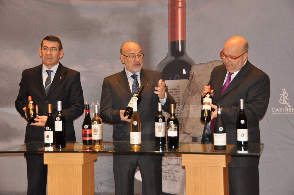 La D.O.P. Cariñena ha presentado este lunes el segundo Salón del Vino de las Piedras y la nueva colección 2013, acto celebrado en la sala Jerónimo Zurita del edificio Pignatelli, sede del Ejecutivo aragonés, y en el que también se han dado a conocer resultados económicos de la Denominación. En la presentación han participado, el presidente de la D.O.P., José Luis Mainar; el secretario general, Claudio Herrero; y el director de Márketing y Comunicación de la Denominación, José Luis Campos.