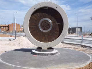Mientras se ultiman los trabajos de urbanización de esta zona, ya se han colocado dos piezas de gran tamaño donadas por sus autores. La primera es una obra conmemorativa del Bronce de Contrebia, del que se cumplen el 15 de mayo 2.100 años del edicto, del ingeniero del Caminos Juan Antonio Ros y que José Urgel ha donado. La segunda, sobre agricultores de Alagón, realizada por el vecino de Alagón Fernando Ruiz.