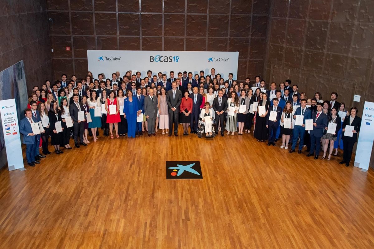 Sus Majestades los Reyes de España han presidido este martes en el CaixaForum Madrid la entrega de las becas de 'la Caixa' a 120 candidatos seleccionados en la convocatoria de 2018 para cursar estudios de posgrado en el extranjero, entre los que se encuentran dos estudiantes zaragozanos, Gonzalo Alonso Álvarez y Elena Torres Aguilar.