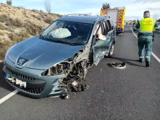Dos personas han resultado heridas en un choque frontolateral entre dos vehículos en la N-234, a la altura de la variante de Teruel. Han sido trasladados en ambulancia hasta un centro sanitario.