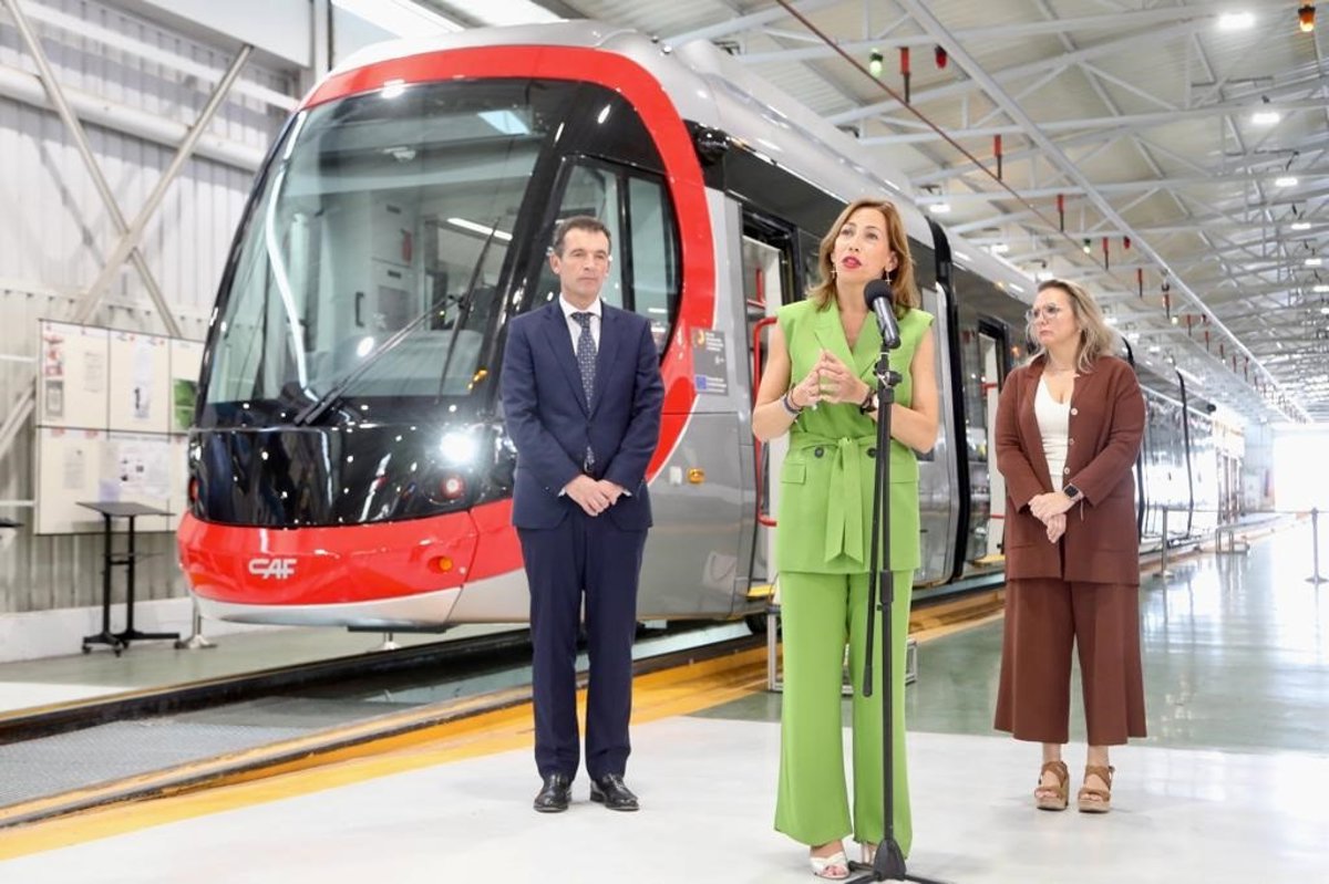 Medio Ambiente y Movilidad, Tatiana Gaudes; el CEO de CAF, Javier Martínez Ojinaga, y la gerente de Los Tranvía de Zaragoza, Ana Moreno.