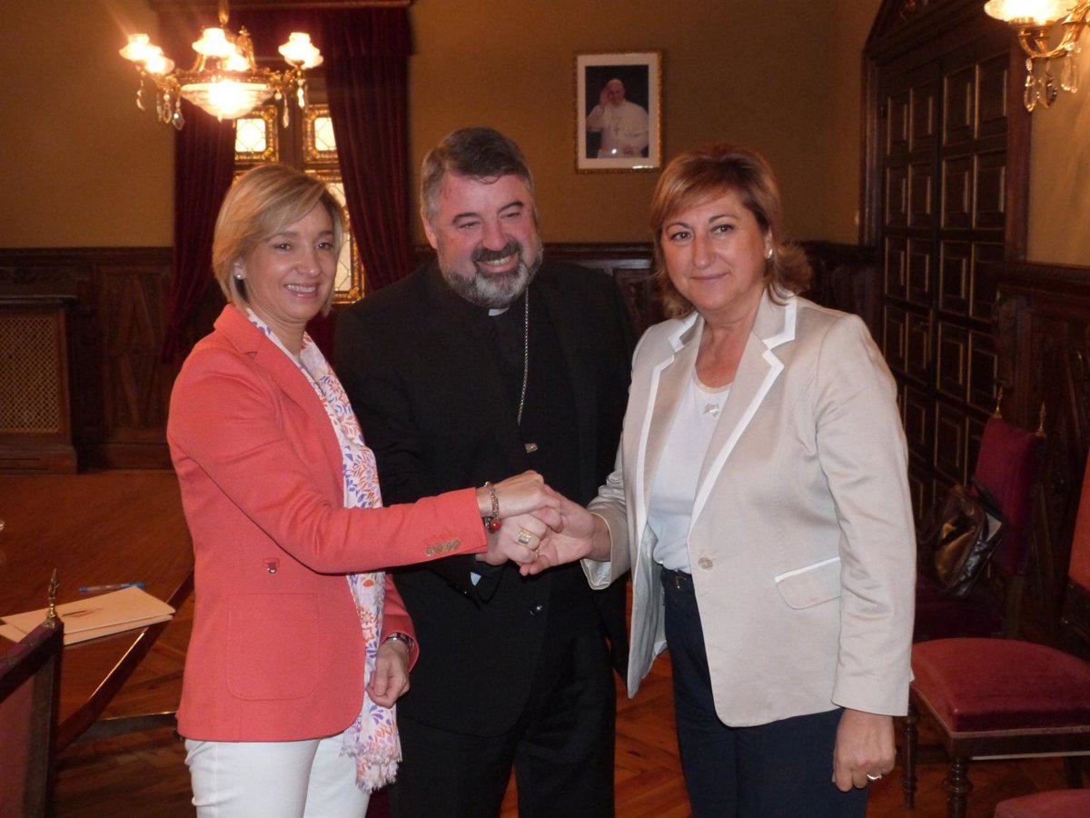 El convenio ha sido suscrito este viernes por la presidenta de la DPT, Carmen Pobo; la directora de la Obra Social de Ibercaja, María Teresa Fernández, y el obispo de Teruel y Albarracín, Carlos Escribano.