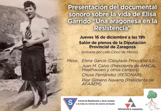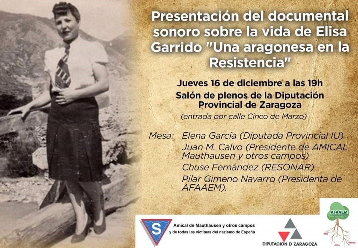 El documental sonoro 'Una aragonesa en la Resistencia' se presentará el jueves, 16 de diciembre, a las 19.00 horas, en el antiguo salón de plenos de la Diputación de Zaragoza, con acceso desde la calle Cinco de Marzo.