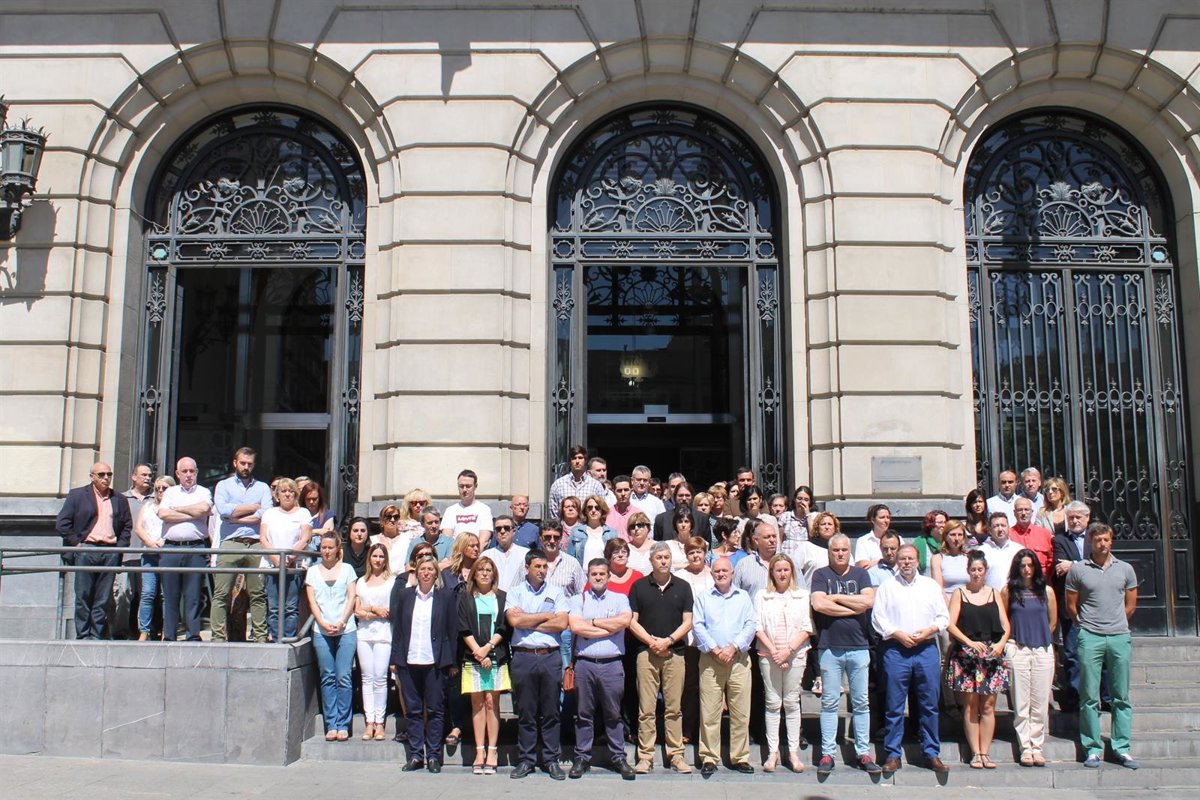 El consistorio ha convocado un minuto de silencio, en el que han participado concejales, trabajadores municipales y ciudadanos, para condenar esta "barbarie" y sumarse al dolor de los familiares y el pueblo francés.