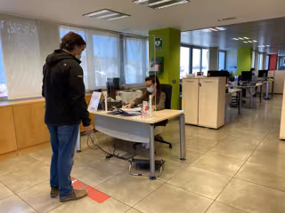 Además, hay diversos carteles informativos en los mostradores, y se han establecido dos circuitos, uno de entrada y otro de salida, con pegatinas de diferente color en el suelo, así como diversas zonas de espera marcadas con círculos, y que mantienen una distancia social de dos metros. No se permite la entrada si no se han seguido las normas establecidas.