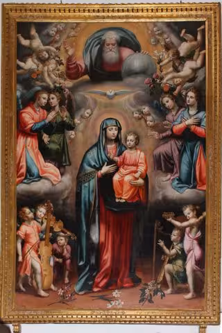El cuadro es un lienzo de grandes proporciones --3,52 metros de alto por 2,42 de ancho-- que fue pintado por un artista aún desconocido en torno al año 1630 y que se exhibe en la parte de atrás del altar. Su título completo es 'Santa María la Mayor con ángeles músicos, Dios padre y el Espíritu Santo', aunque en el municipio también se le conoce como 'Nuestra Señora de las Nieves'.