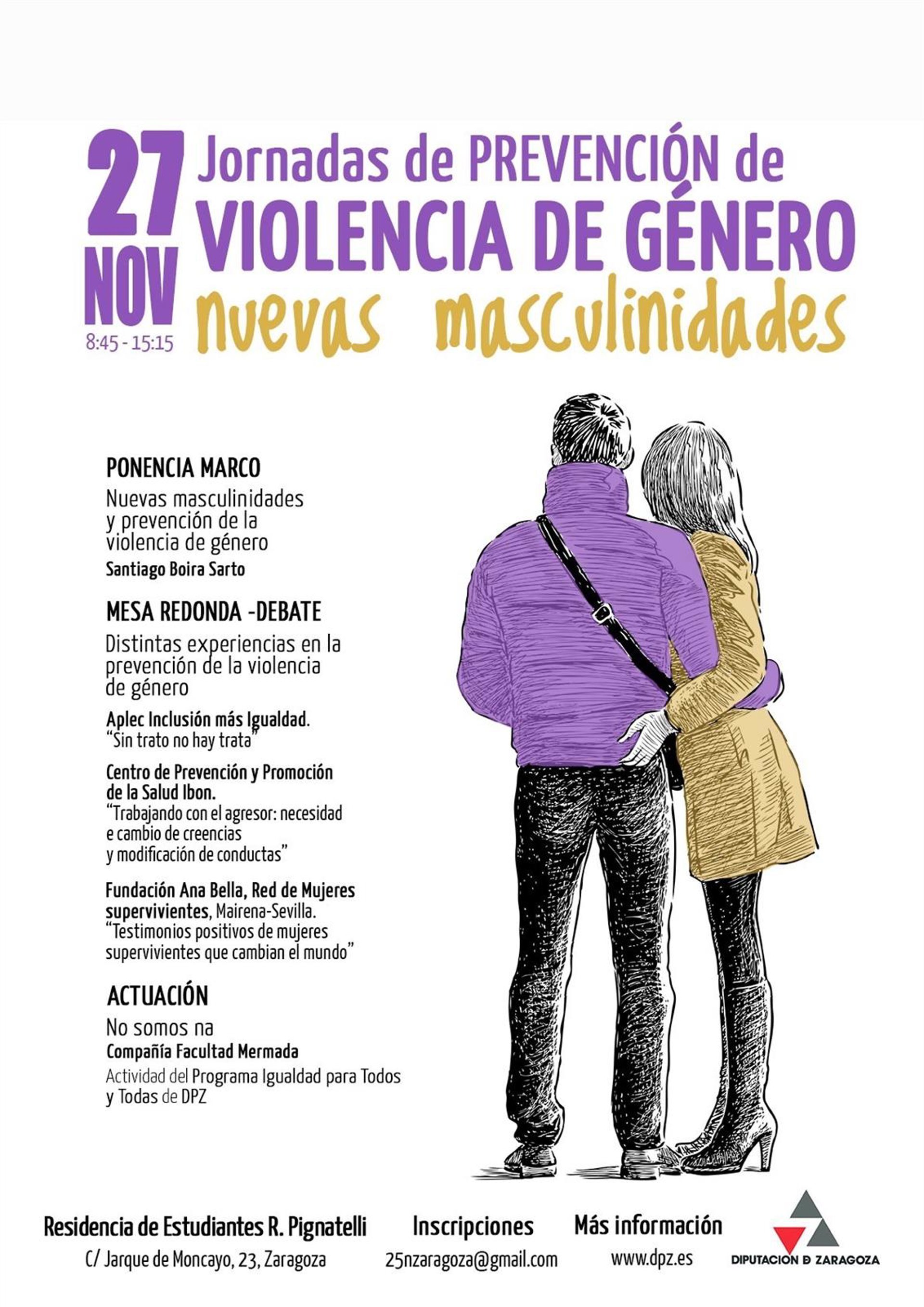 La Diputación de Zaragoza (DPZ) se sumará a los actos por el Día Internacional Contra la Violencia de Género con una jornada de prevención que se celebrará el próximo lunes, 27 de noviembre, en la residencia de estudiantes Ramón Pignatelli de la capital aragonesa.