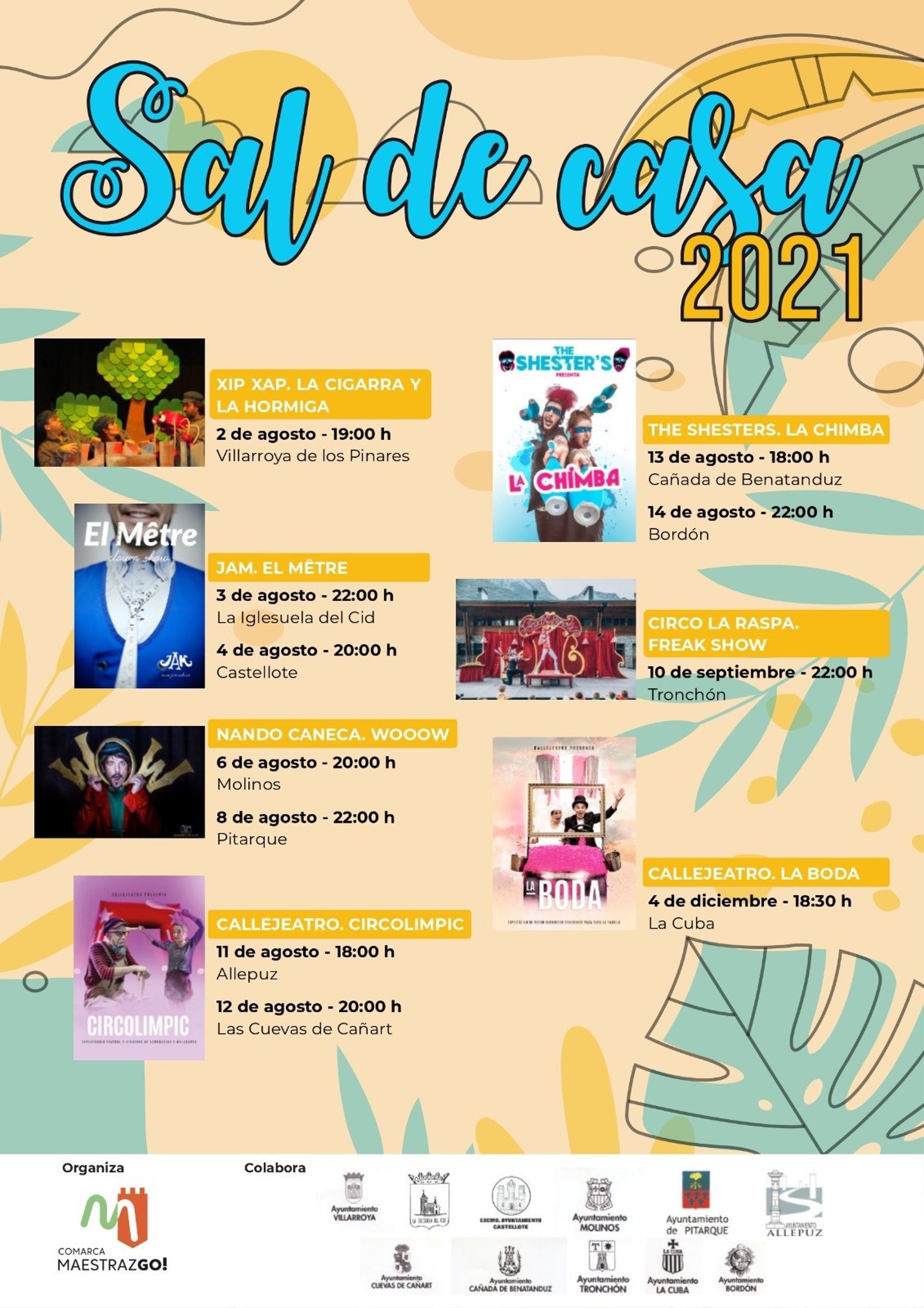 El programa cultural 'Sal de casa', impulsado por el Departamento de Cultura de la Comarca del Maestrazgo, celebrará su duodécima edición el próximo mes de agosto. Este programa pretende acercar las diferentes artes escénicas a todos los pueblos de la comarca, con propuestas de teatro, animación, magia, monólogos y música.