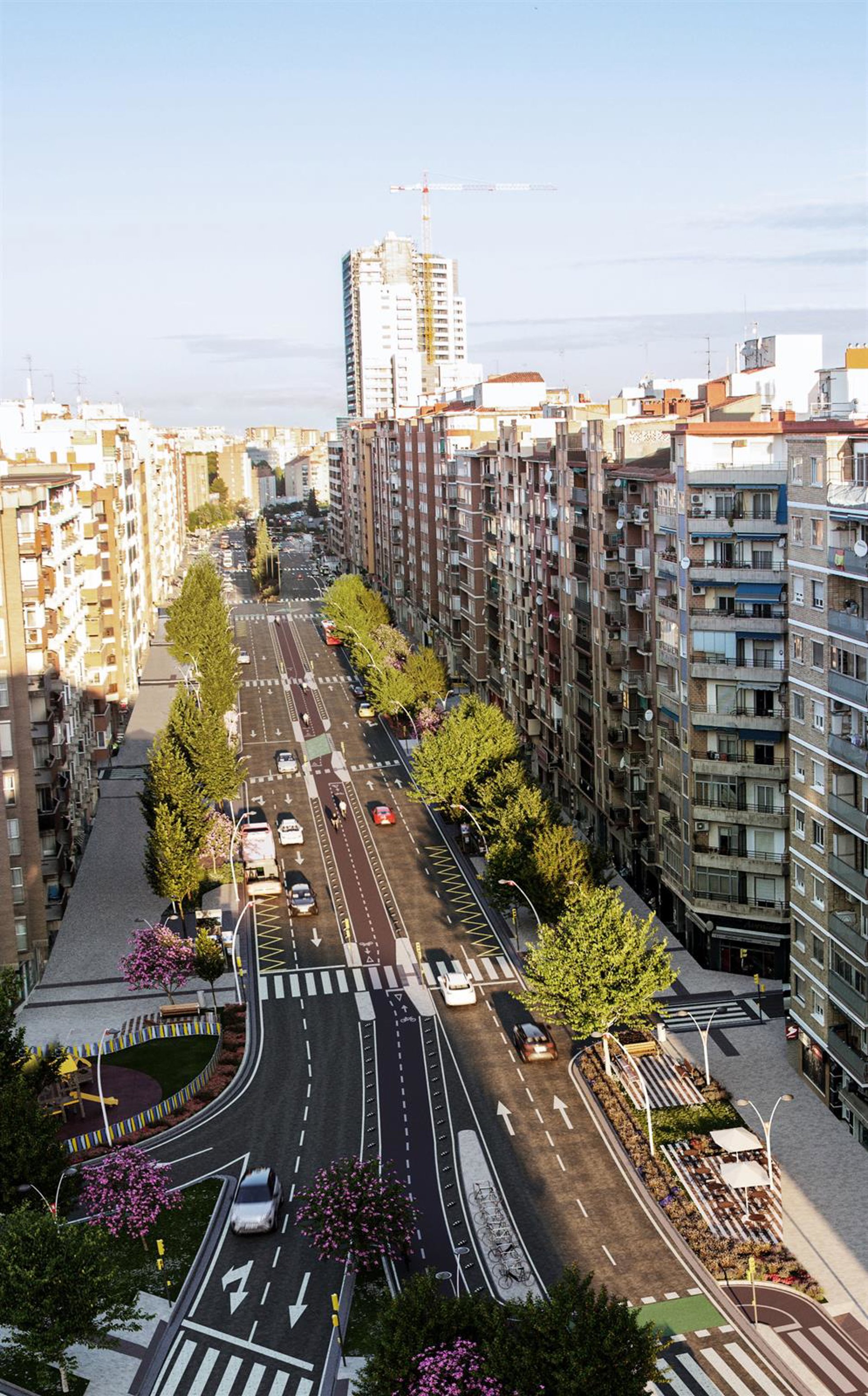 La nueva avenida Navarra favorecerá también la movilidad sostenible mediante la creación un carril bici segregado de doble sentido que discurrirá por el centro de la avenida y que conectará con los de plaza de la Ciudadanía, paseo Calanda y calle Rioja.