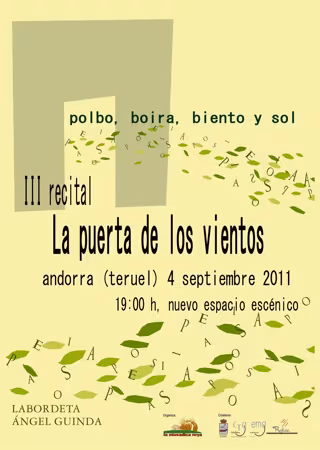 La tercera edición de 'La puerta de los vientos' se celebrará este domingo en Andorra. Se trata de un recital que contará con la presencia de numerosos poetas, tanto locales como de otros lugares de la provincia, que compartirán su poesía con el público.