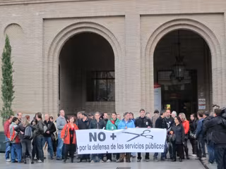 Empleados del Ayuntamiento de Zaragoza se han concentrado frente a las puertas del Consistorio para criticar las "políticas de recorte" del Real Decreto Ley del Gobierno central del pasado 15 de julio, en el que se suprime la paga extra de los trabajadores públicos, entre otras medidas.