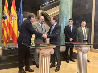 El vicepresidente y consejero de Industria del Gobierno de Aragón, Arturo Aliaga, y el presidente de Oxaquim, Jaime Miquel, han firmado este miércoles un convenio de colaboración para impulsar este proyecto empresarial. También han asistido a la rúbrica el presidente aragonés, Javier Lambán, y el consejero y director técnico de Oxaquim, Daniel Miquel.