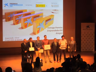 Este jueves, el premio en la categoría autonómica en la región ha sido entregado por el director territorial de 'la Caixa' en Aragón y La Rioja, Raúl Marqueta; por el director general en funciones del Instituto Aragonés de Fomento (IAF), Antonio Gasión, y por el responsable de la Dirección de Operaciones de ENISA, Javier Sánchez.