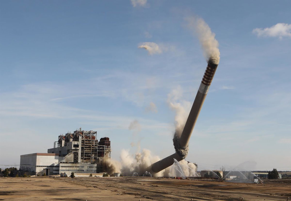 Derribo de la chimenea de la central térmica de Andorra - Javier Escriche - Europa Press