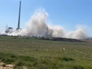 Endesa vuela de una sola vez las tres torres de refrigeración de la Central Térmica de Andorra. - EUROPA PRESS