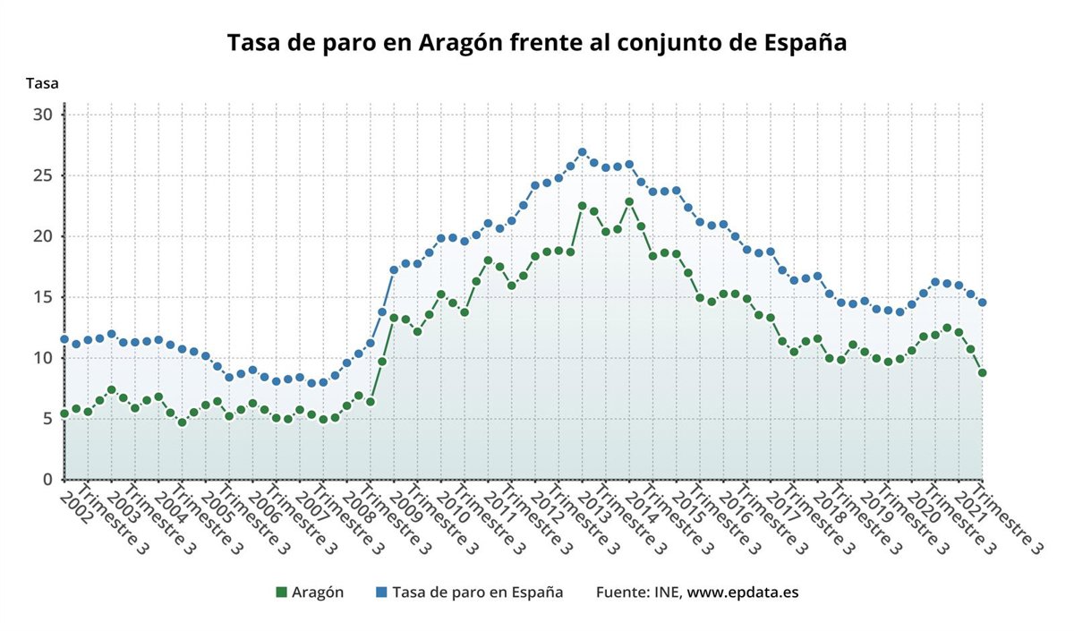 La tasa de desempleo en Aragón ha sido la mejor de todas las CCAA - EPDATA