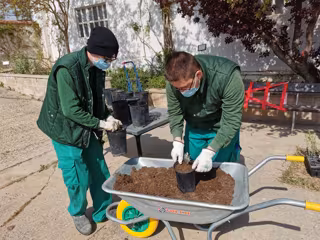 El Grupo 'Jardineros', de formación no reglada, está dirigido a la población más joven, que acude a la Escuela por primera vez, sin experiencia laboral y con dificultades en su desarrollo personal y social. Los objetivos son la familiarización con la jardinería, la