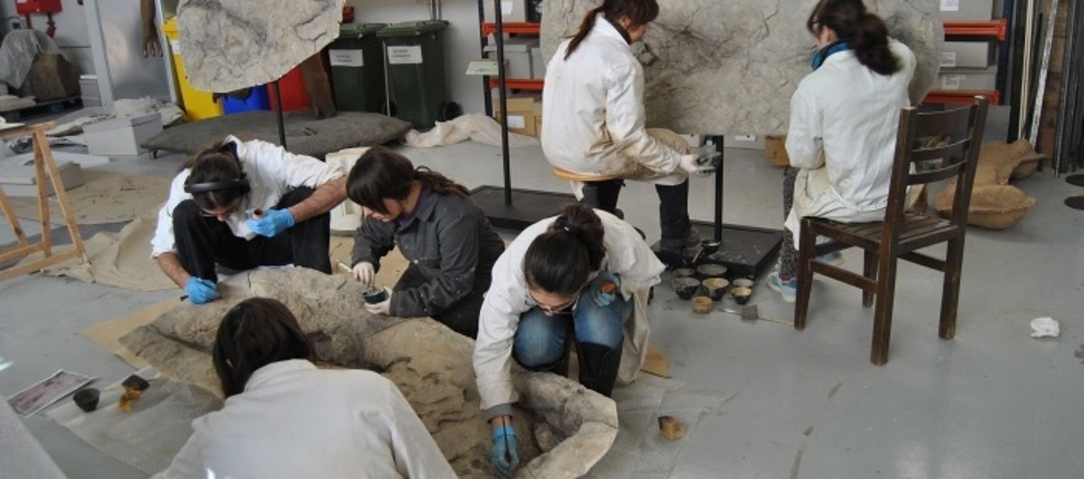 Alumnos de la Escuela Taller de Restauración Paleontológica IV ha realizado el moldeado y replicado de varias huellas de yacimientos de la provincia de Teruel.