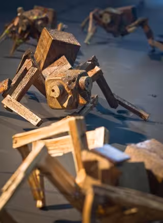 La muestra la integran animales compuestos con maderas de diferente procedencia y tipo, elementos de reciclaje utilizados para componer pequeñas bestias. "Un goce visual para grandes y chicos", han resumido desde Teatro Arbolé en una nota de prensa.