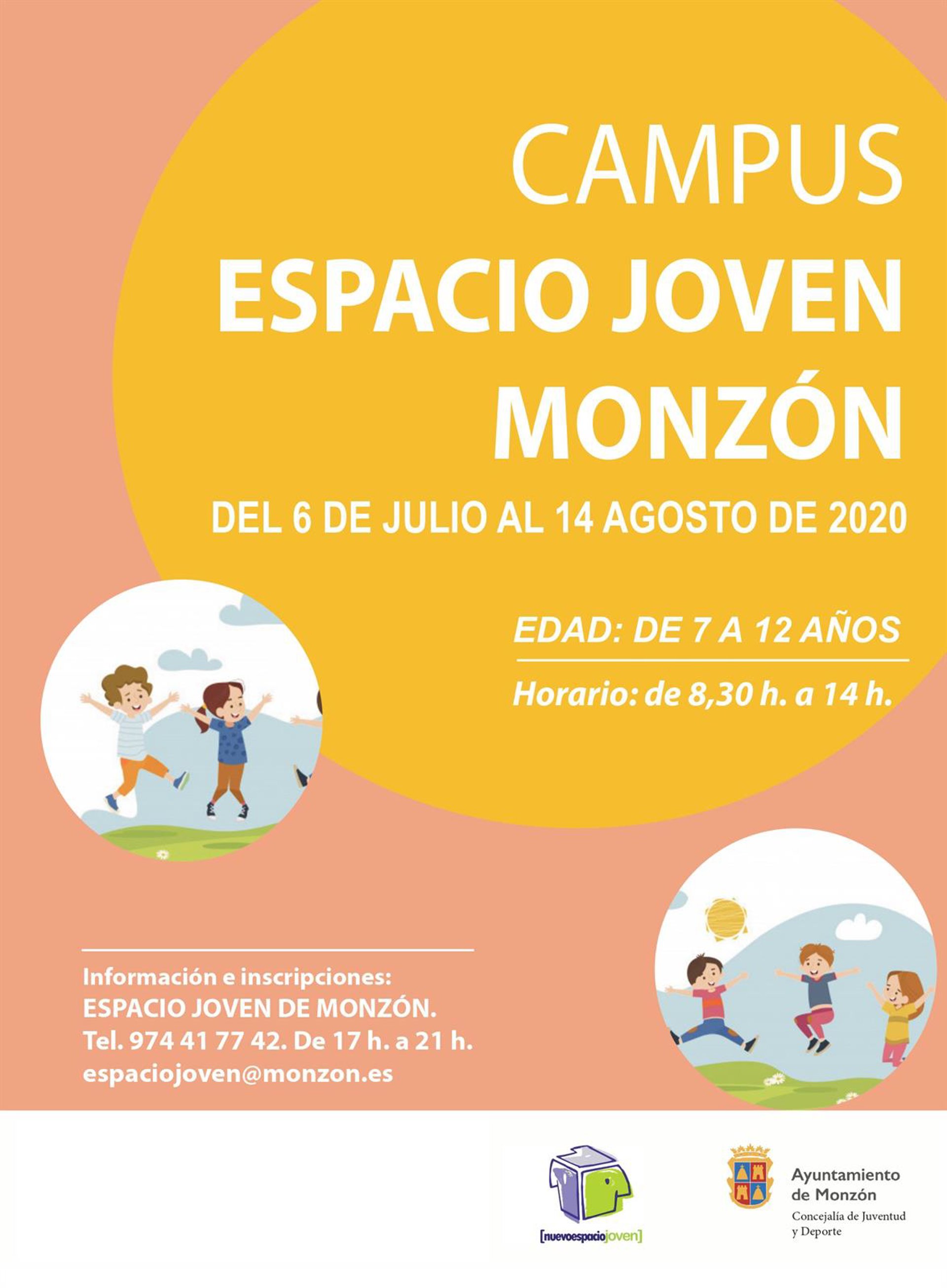 El Espacio Joven de la localidad oscense de Monzón organiza un campus este verano dirigido a menores de entre 7 y 12 años. Así, del 6 de julio al 14 de agosto, en horario de 8.30 a 14.00 horas, los 45 asistentes podrán disfrutar de actividades culturales, de ocio y deportivas. El plazo de preinscripción comienza este lunes, 29 de julio, y las plazas se asignarán siguiendo el orden de solicitud.