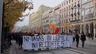 Los estudiantes de enseñanzas medias y universitarias de Aragón han secundado una huelga convocada por once organizaciones de alumnos y juveniles en contra de los recortes, la subida de las tasas académicas y la implantación de la Ley Orgánica de Mejora de la Calidad Educativa (LOMCE).