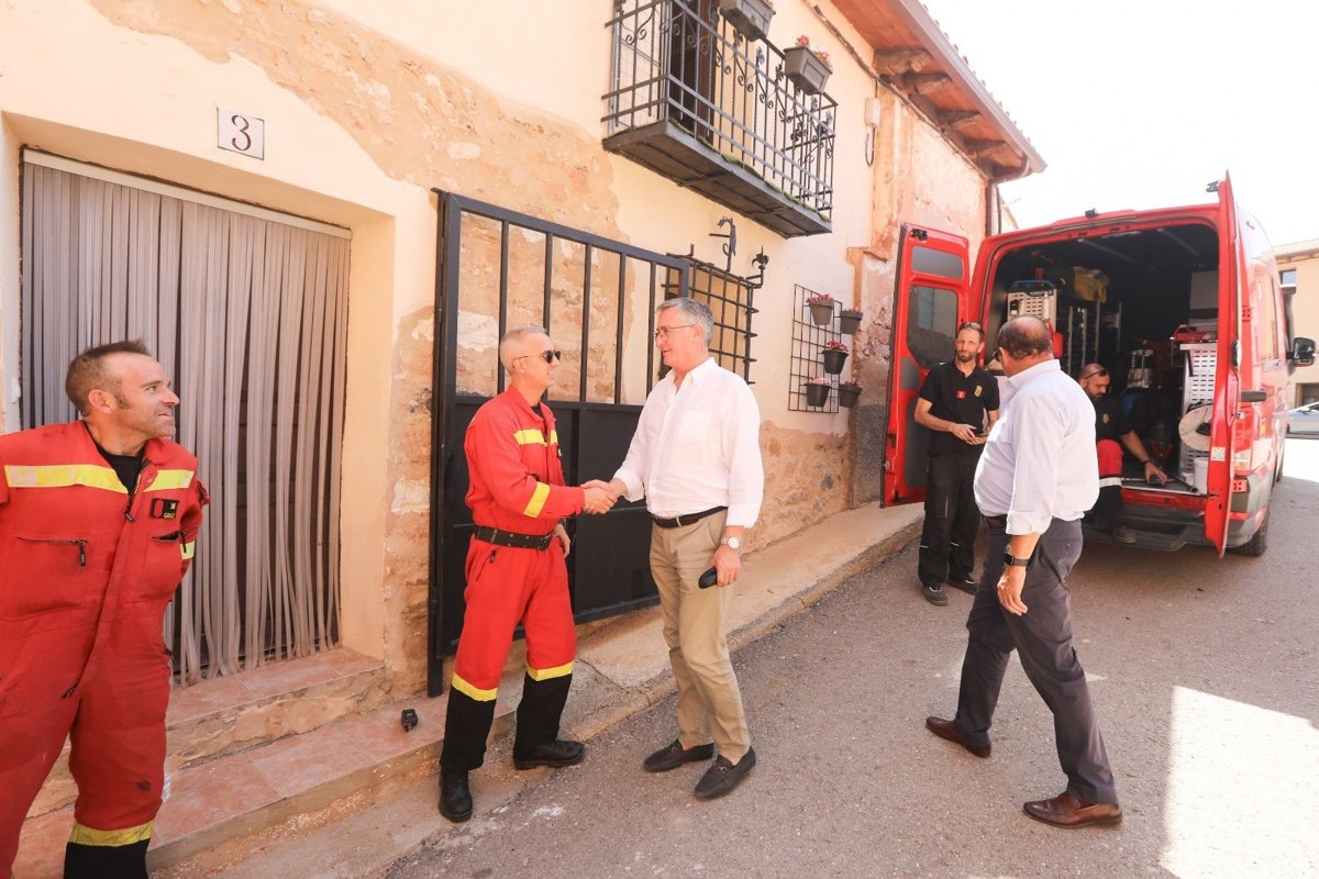 El consejero de Medio Ambiente y Turismo del Gobierno de Aragón, Manuel Blasco, ha asistido a la planificación de los trabajos de extinción del incendio desde el Puesto de Mando Avanzado donde ha conocido las últimas novedades de la mano de sus responsables y también ha visitado la localidad turolense afectada por el incendio y ha hablado con sus vecinos.