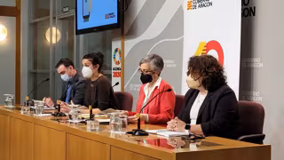 La directora general de Planificación y Equidad del Gobierno de Aragon, Ana Montagud, explica el proceso de escolarización, junto con los tres directores provinciales. - GOBIERNO DE ARAGÓN