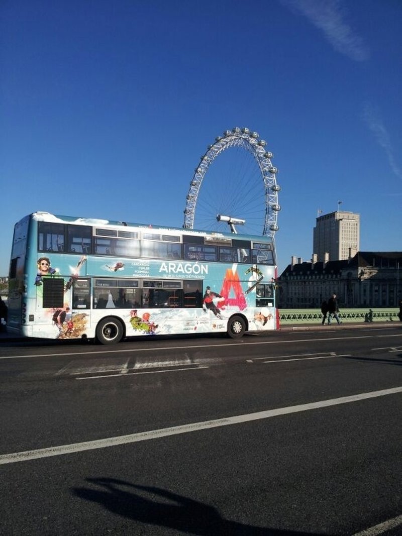 Paralelamente, un autobús rojo tradicional inglés, de dos pisos, se ha vinilado íntegramente con imágenes de la oferta turística aragonesa y recorrerá, durante un mes, las calles de la capital los enclaves más significativos de Londres como Tower Bridge and the Tower of London, Houses of Parliament, Whitehall Trafalgar Square, Charing Cross, Picadilly, Regent Street, Oxford Circus, Marble Arch, entre otros. Tras la feria, el autobús formará parte de una línea regular que transcurre por el centro de Londres.