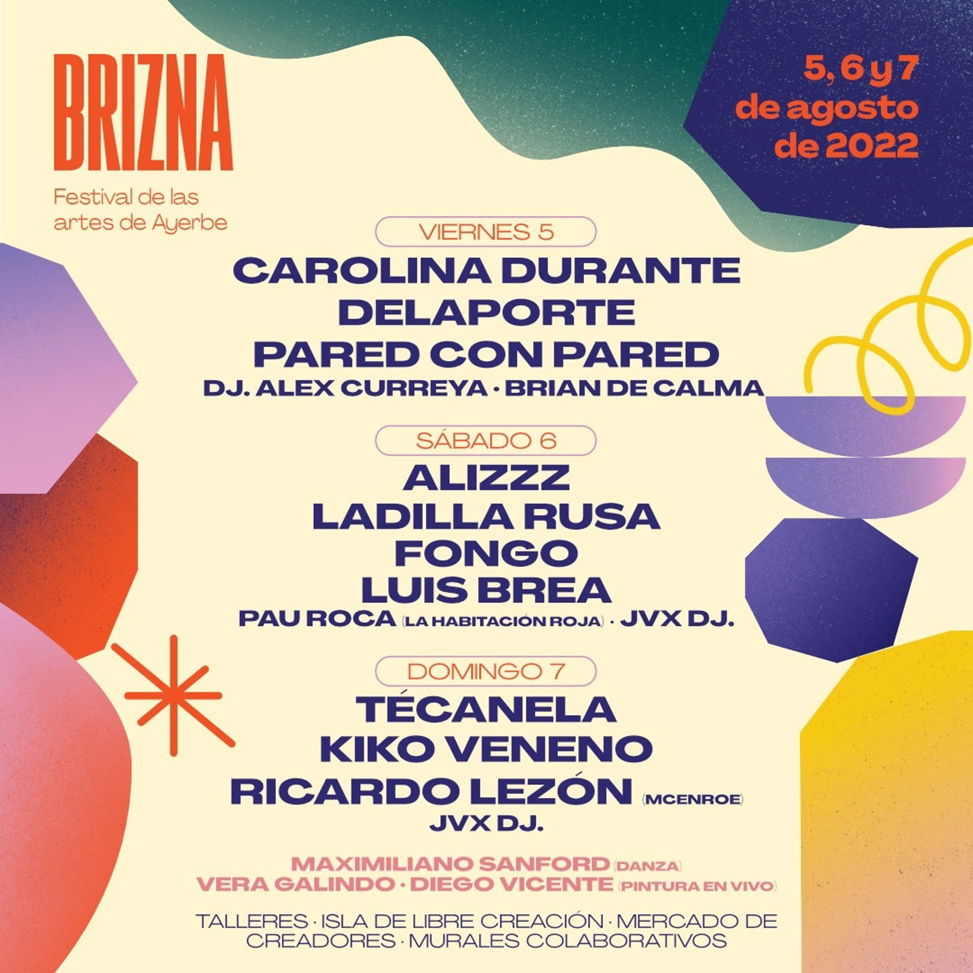 También se podrá participar en otro mural colaborativo y en La Parada de la Estampación, podrán customizar elementos de merchandising de Brizna. Todo esto amenizado por la música de DJ Álex Curreya, el viernes, y de JVX DJ, el sábado y domingo.