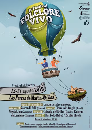 El Festival Folclore Vivo contará con la participación del grupo de músicas populares Zascandil Folk (Cuenca) el 14 de agosto; al día siguiente actuará el grupo de jota Cierzos de Aragón (Utrillas, Teruel) y Vegetal Jam, un grupo de Zaragoza recientemente galardonado en los Premios de la Música Aragonesa 2018.