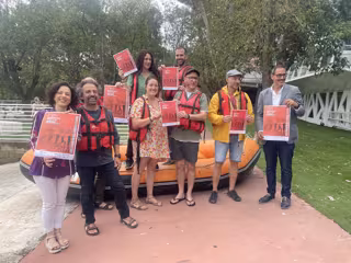 El embarcadero del Club Naútico de Zaragoza ha acogido este lunes, 19 de junio, la presentación del festival. Los miembros de la compañía 'El Gato Negro' han llegado al emplazamiento haciendo rafting y, a continuación, han interpretado un breve acto de la obra 'Guggenheim', que estrenarán el viernes 14 de julio, en Murillo.