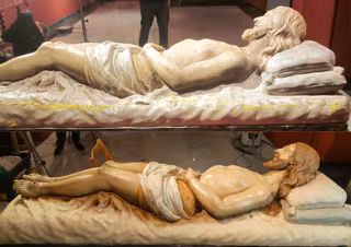 El cristo yacente de Gregorio de Mesa Martínez es una obra de notabilísima calidad artística realizada en barro cocido y policromado.