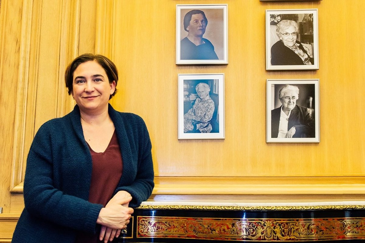 Según fuentes del Ayuntamiento de Barcelona, la foto de María Domínguez se encuentra en un muro reservado en su despacho a mujeres ilustres.