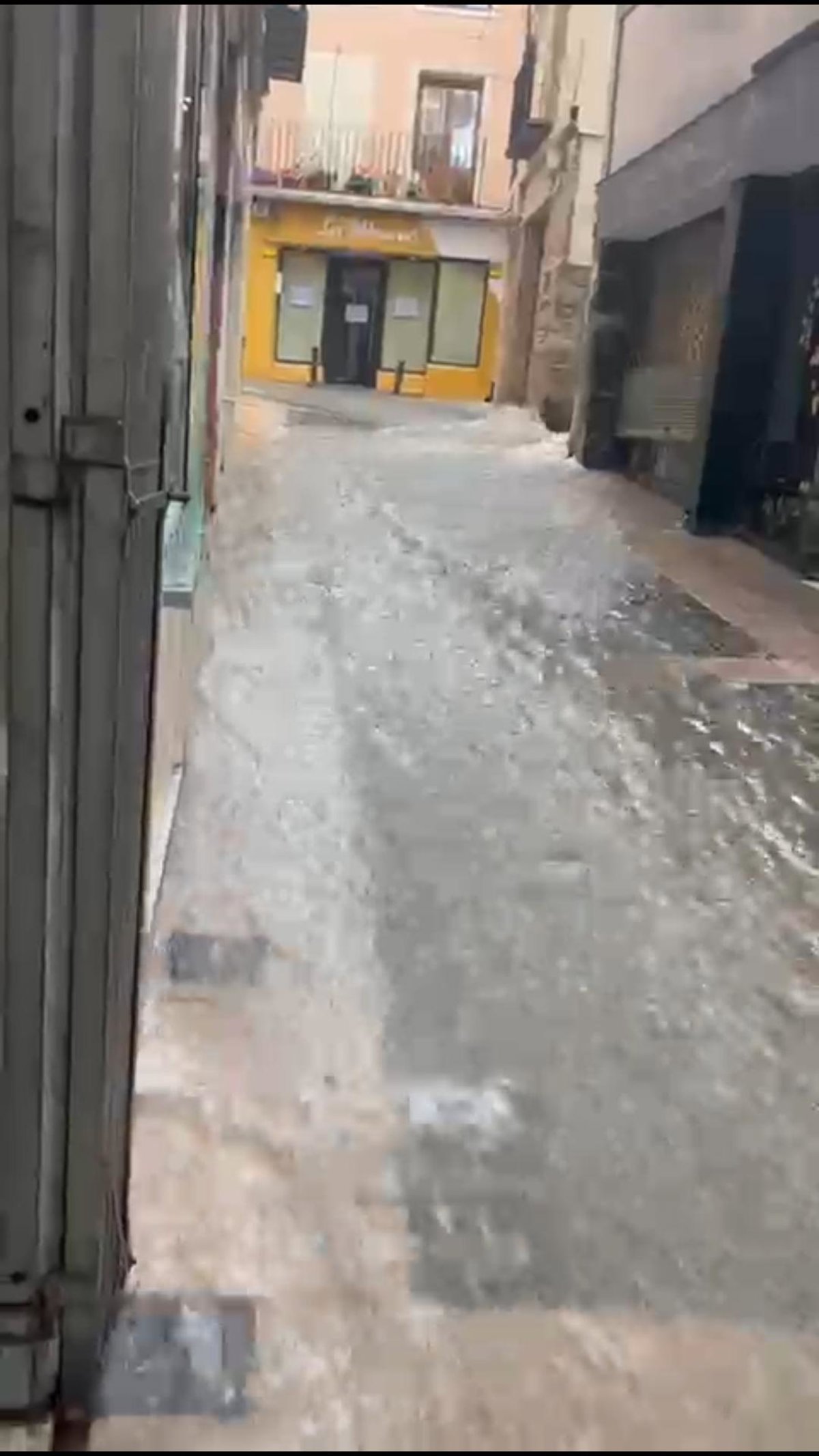 Una fuerte tromba de agua ha caído a primera hora de la tarde de este viernes en Tarazona (Zaragoza), donde algunas calles del entorno del centro llevaban un importante caudal que bajaba con fuerza causando la sorpresa de los vecinos.