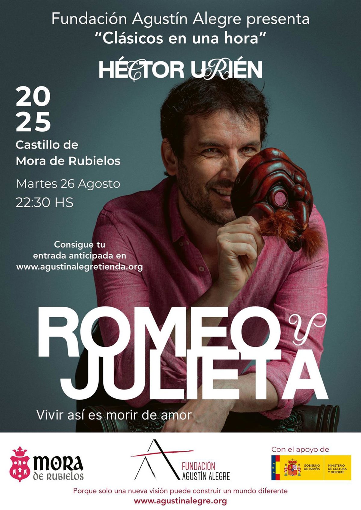 La Fundación Agustín Alegre pone en escena esta próxima semana en la provincia de Teruel 'Clásicos en una hora', una propuesta escénica singular a cargo de Héctor Urién, uno de los mejores contadores de historias de la escena nacional. Su fórmula combina humor, inteligencia y elegancia para acercar los grandes clásicos al público general en una hora vibrante, accesible y sorprendente.