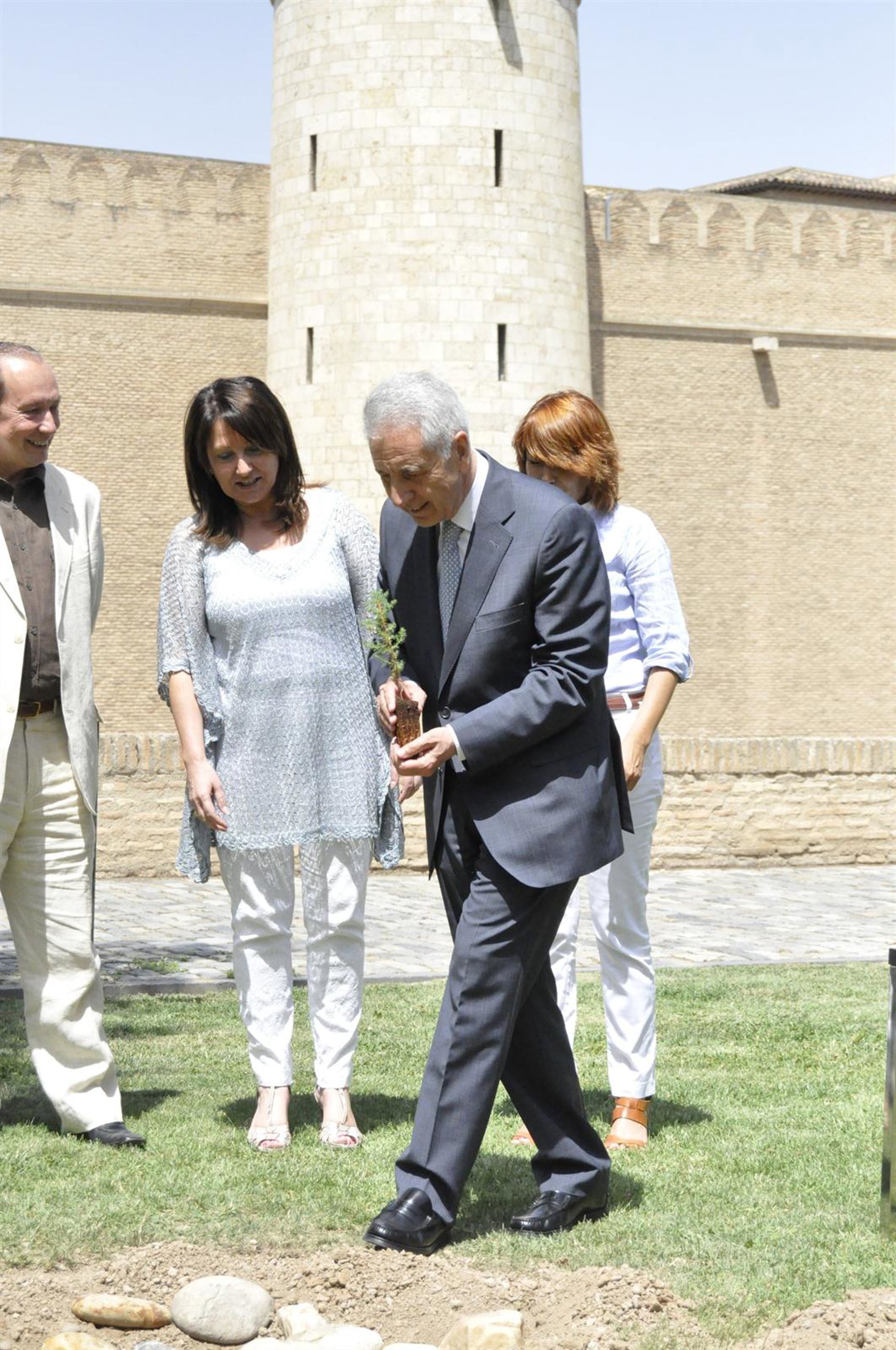 La Fundación + Árboles plantará 625 sabinas autóctonas en la comarca de Los Monegros con las que pretende reducir la presencia de CO2 en la atmósfera y crear empleo. La vicepresidenta primera de las Cortes de Aragón, Rosa Plantagenet-White, ha presidido el acto de presentación este viernes en el Palacio de La Aljafería, donde se ha realizado una plantación en el Jardín de las Comarcas.