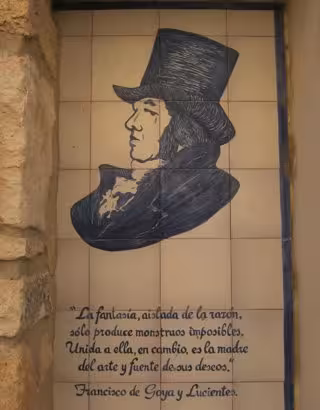 Cerámica de Muel con un retrato de Francisco de Goya que se puede ver en una de las calles de su localidad natal, Fuendetodos (Zaragoza). - EUROPA PRESS