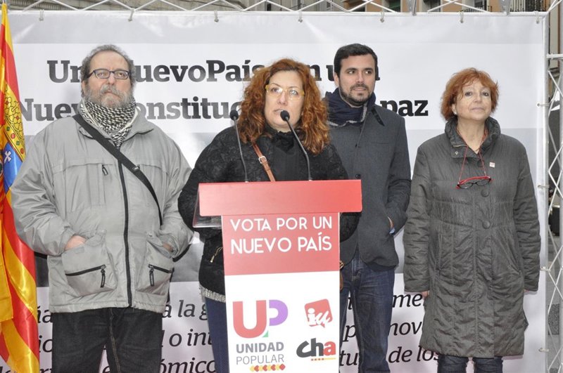 Como los candidatos locales, Alberto Garzón ha lamentado que el 33 por ciento del suelo de la ciudad de Zaragoza sea de uso militar y ha recalcado que "votar UP es votar paz para hacer de ella una bandera en las próximas décadas".