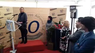Marta Gastón -acompañada por el director general de Economía, Luis Lanaspa, y el director gerente de Aragón Plataforma Logística (APL), Francisco de la Fuente-, ha cerrado las intervenciones institucionales, precedida por Fernando Moraga, director general de Hierros Alfonso; David Asensio, uno de los miembros de la tercera generación de este grupo empresarial familiar aragonés; y Luis Felipe, alcalde de Huesca.