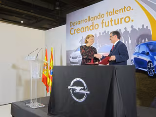 Este convenio lo han suscrito la presidenta del Gobierno de Aragón, Luisa Fernanda Rudi, y el director general de GM España, Antonio Cobo, este jueves, en la planta de Opel en Figueruelas (Zaragoza). En el acto han estado acompañados por el consejero de Economía y Empleo, Francisco Bono, y el de Industria e Innovación, Arturo Aliaga.
