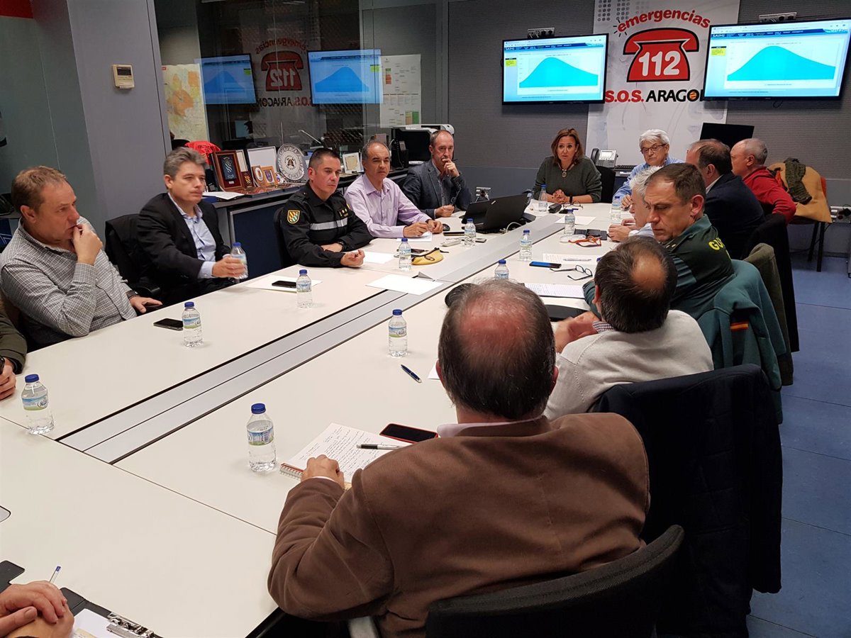 En la cita, celebrada en la sede del 112 de Aragón, se ha acordado avisar a los propietarios de granjas sensibles de la Ribera Alta del Ebro con el objetivo de que tomen medidas preventivas para el caso de que se puedan generar afecciones.