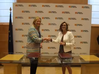 La consejera de Economía, Planificación y Empleo del Gobierno autonómico, Marta Gastón, y la directora territorial de CaixaBank en Aragón y La Rioja, Cristina González, han suscrito un acuerdo de colaboración que recoge la puesta en marcha de una línea de financiación dirigida a que las empresas vinculadas al Camino de Santiago renueven sus establecimientos y a la implantación de nuevos negocios ante la celebración del Xacobeo 2021.