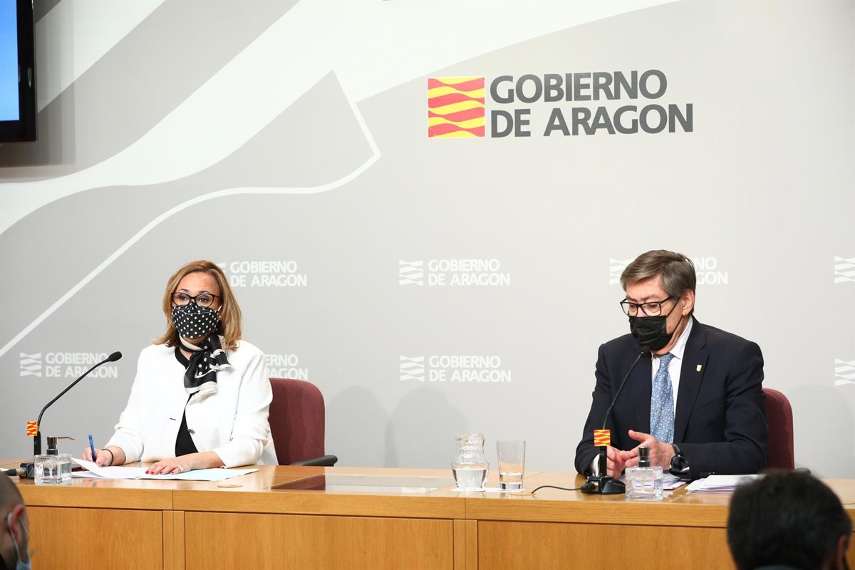 La consejera de Presidencia de Aragón, Mayte Pérez, y el vicepresidente del Ejecutivo autonómico, Arturo Aliaga, en la rueda de prensa posterior al Consejo de Gobierno. - GOBIERNO DE ARAGÓN