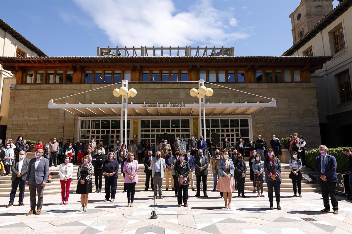 Goikoetxea ha leído el manifiesto del Gobierno de Aragón para condenar el asesinato de una mujer, presuntamente a manos de su expareja, en el distrito zaragozano de Las Fuentes, este fin de semana. En el Edificio Pignatelli se ha guardado un minuto de silencio, en el que han participado, entre otros, la consejera de Presidencia, Mayte Pérez, y los titulares de Educación, Felipe Faci; Sanidad, Sira Repollés; Agricultura, Joaquín Olona; Ciudadanía, María Victoria Broto; y Ciencia Maru Díaz, entre otros.