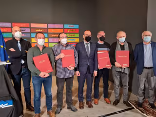 El consejero ha hecho entrega del Premio a la Trayectoria profesional en el sector del libro de Aragón 2020 a Chuse Aragüés, fundador de la distribuidora Ícaro y El Silbo Vulnerado, que ha ejercido su actividad en torno al reconocimiento y promoción de la diversidad lingüística aragonesa.
