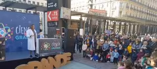 La performance científica ha tenido una hora de duración y todos los niños y niñas que han asistido al espectáculo han recibido un álbum de cromos titulado '36 mujeres en las que inspirarse'.