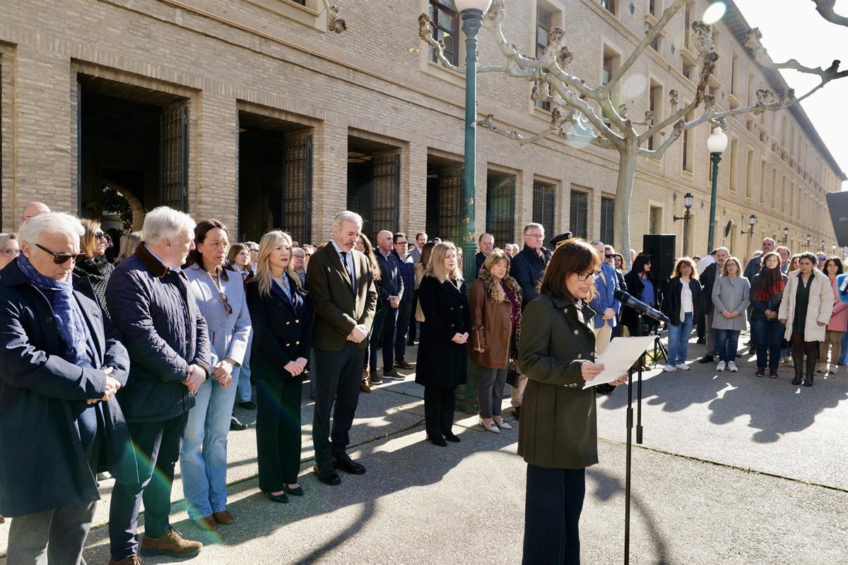 El presidente en funciones, Jorge Azcón, ha asistido a un minuto de silencio acompañado de su Gobierno, para reafirmar "el total rechazo a cualquier forma de violencia contra las mujeres".
